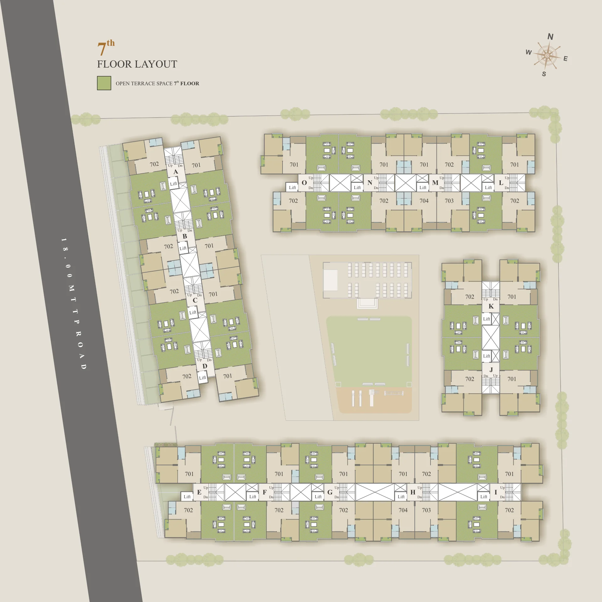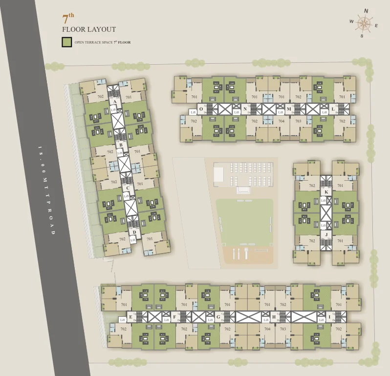 There are a total of 7 floors in each building of Shree Siddheshwar Hillcrest.