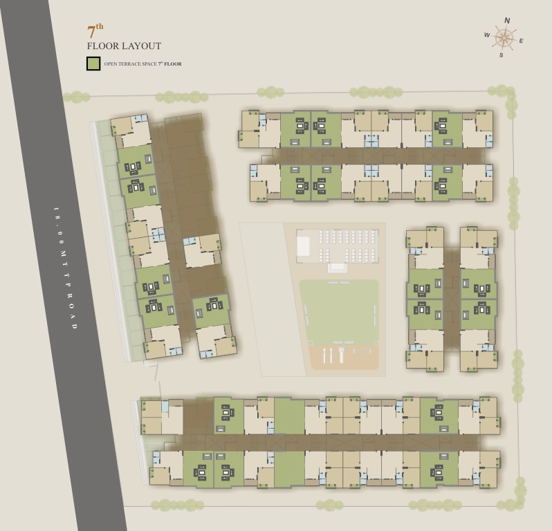 There are a total of 7 floors in each building of Shree Siddheshwar Hillcrest.